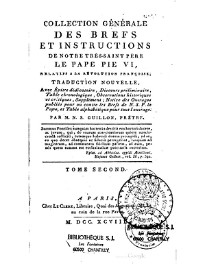 Collection générale des brefs et instructions de Notre Très-Saint Père le Pape Pie VI, relatifs à la Révolution françoise - Tome 2